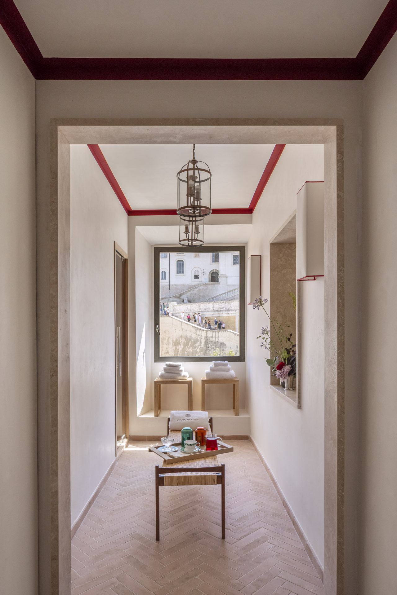 At the pinnacle of Casa Naman lies a private altana, a rare architectural gem that hosts an intimate spa, where guests can indulge in ab-solute serenity while admiring Rome’s breathtaking skyline.
